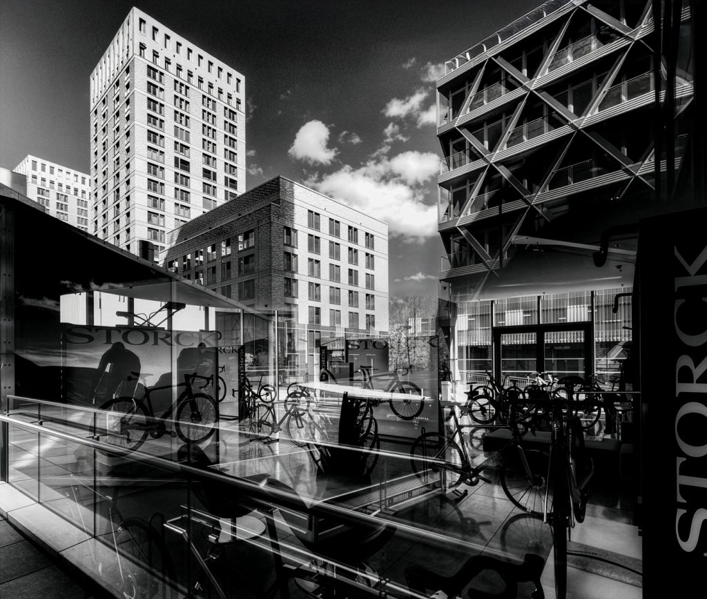 Start 1. Platz des Monatsthemas Urbane Reflexionen. Fotograf: Franjo Hartmann. Bildtitel: Spiegelung mit Einsicht.