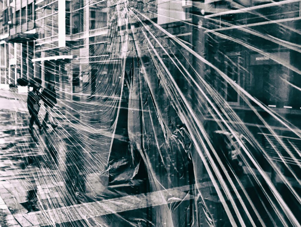 Start 1. Platz des Monatsthemas Urbane Reflexionen. Fotograf: Reinhold Jung. Bildtitel: Schaufenster-Folie