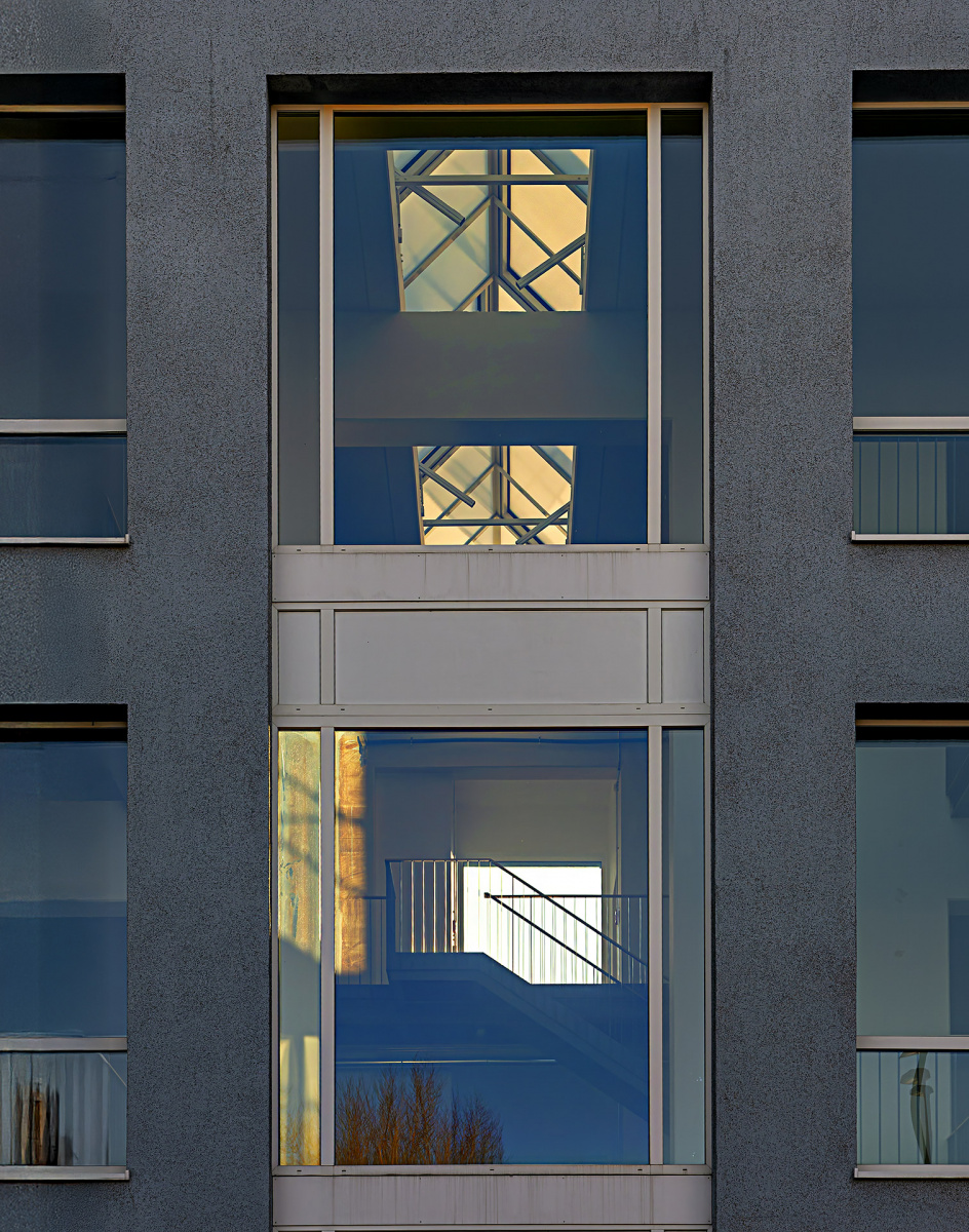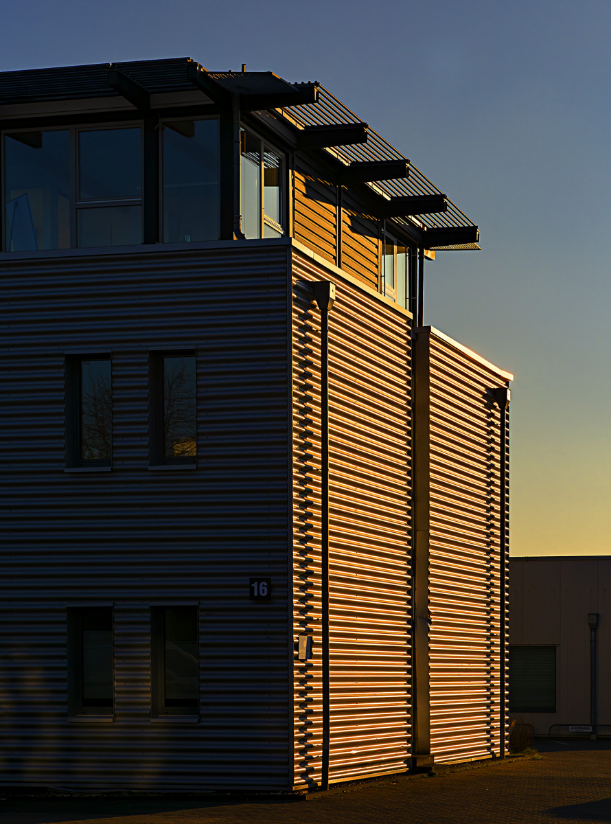 Vor einigen Jahren entstand im Süden von Neuss ein kleines Neubaugebiet, mit Gewerbe- und Wohnbebauung. Die Fotos sind Eindrücke von einem Nachmittags-Spaziergang durch dieses Gebiet im Februar 2025.